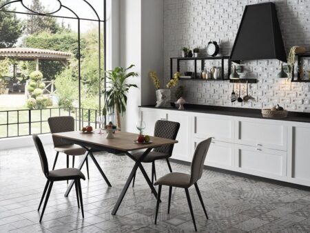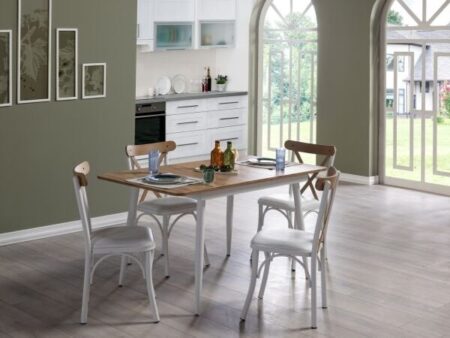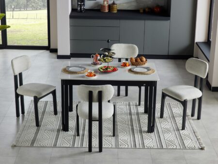 Das Alya-Esszimmerset verleiht Ihren Wohnräumen mit seinem modernen Avantgarde-Stil und eleganten Details Eleganz und Ästhetik. Die herrliche Harmonie der Creme- und Cappuccino-Farben, kombiniert mit dem faszinierenden Glanz der Golddetails, verleiht Ihrem Esszimmer eine edle Note. Der natürliche Farbübergang rundet den frischen und eleganten Look des Anzugs ab. Elegante Goldgriffe und speziell gestaltete Beine verleihen dem Set eine moderne Note. Die auf den Tischen und Oberflächen verwendete Travertin-Marmormuster-Applikation verstärkt die moderne Ästhetik des Sets. Feine Detailverarbeitung und elegante Profilapplikationen unterstreichen den anspruchsvollen Charakter des Designs. Dieses Detail, das den visuellen Reichtum des Sets erhöht, verbindet Modernität mit einem romantischen Ansatz. Während es durch sein stilvolles und elegantes Design die Blicke auf sich zieht, ist es ein beeindruckendes Beispiel für modernen Avantgarde-Stil. Durch sein ergonomisches Design und die großen Ablageflächen bietet er einen praktischen Nutzen. Das Alya-Esszimmerset sorgt mit seinen frischen Farben, goldenen Details und dem modernen Design für einen perfekten Look in Ihrem Esszimmer. Dieses Set vereint Ästhetik und Funktionalität und verleiht Ihren Wohnräumen mit seinen eleganten Details und dem originellen Design eine anspruchsvolle Note. Es ist eine ideale Wahl für diejenigen, die Eleganz und Einfachheit miteinander verbinden möchten.