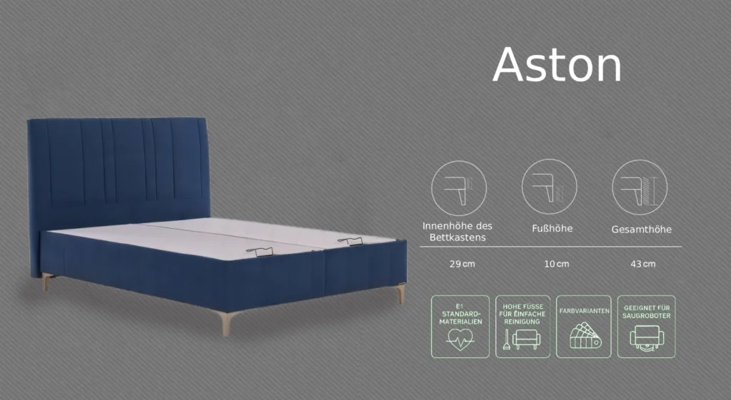 - Großzügiger Bettkasten mit 29 cm Innenhöhe für extra viel Stauraum