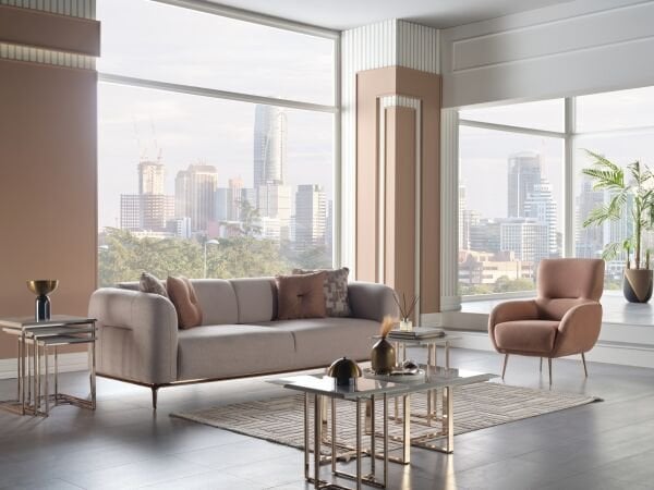 Briella Lux Sofa-Set, das durch seine Eleganz besticht und durch seinen Komfort neue Maßstäbe setzt; Mit seiner Ästhetik, Funktionalität und modernen Luxuslinien wird es Wohnräume neu definieren …